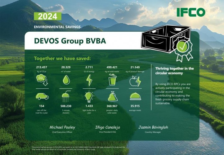 Wist je dat Devos Group al jaren samenwerkt met IFCO voor haar duurzame en herbruikbare verpakkingsoplossingen? Enkel aan IFCO verpakking reduceert Devos Group maar liefst 213.457kg CO2, dat is een coëfficient van ongeveer 154 wagens een heel jaar van de weg te houden.